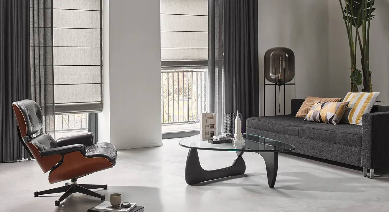 De stofkeuze bepaalt de uitstraling van je vouwgordijn. Transparante stoffen filteren het licht zacht en geven privacy overdag. Semi-transparante stoffen bieden meer afscherming terwijl ze nog steeds licht doorlaten. Verduisterende stoffen blokkeren het licht volledig.